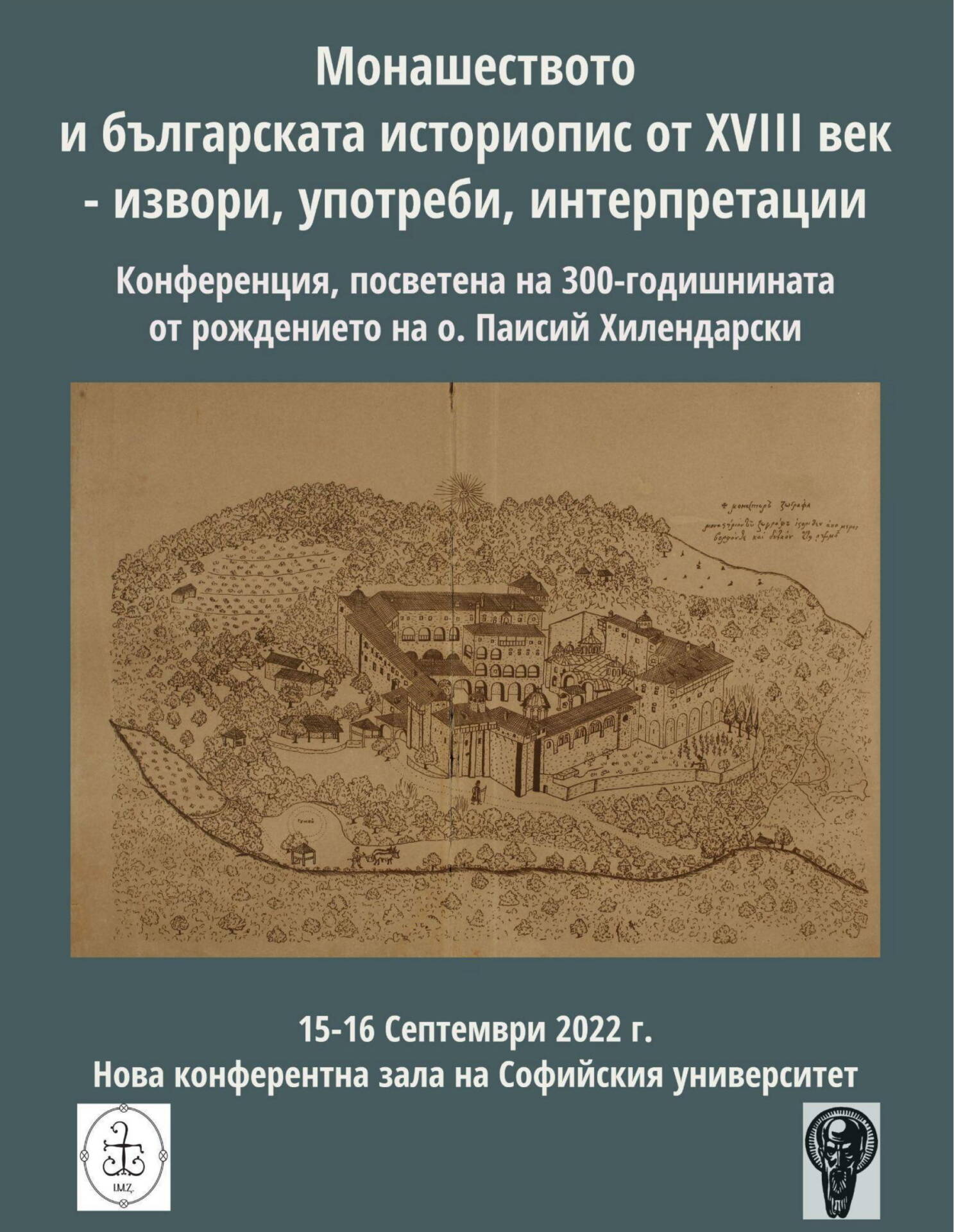На 15. и 16. септември 2022 г. в Софийския университет „Св. Климент Охридски“ бе проведена международна конференция на тема „ Монашеството и българската историопис от XVIII в. – извори, употреби, интерпретации“ в чест на 300-годишнината от рождението на Отец Паисий Хилендарски. Тя бе организирана от Софийския университет, Факултет по славянски филологии(1), и от Зографската света обител. В програмата бяха включени 32 доклада на учени от България, Англия, Белгия, Германия, Гърция, Италия. Конференцията бе открита от деканата на Факултета по славянски филологии доц. д-р Бойко Пенчев и от иеромонах Атанасий от името на манастирското братство. Пленарната секция включваше три доклада. В първия доклад, озаглавен „Типове подходи към разбиране на „История славянобългарска“ и въобще на историята“, иером. Атанасий разгледа три основни гледни точки към историята. Първата от тях той определи като етноцентрична, втората – като изхождаща от понятието за „въобразени общности“, а третата като еклисиологична, чрез която според автора се преодоляват някои ограничения на първите два подхода, защото единството на членовете на Църквата не е въпрос на обща идеология, то е онтологично единство в Христовото тяло, надскачащо всякакви етнически и идеологически различия. В този смисъл светците са висш критерий за историческия разказ и неслучайно последната глава в „История славянобългарска“ е посветена на тях. В следващия доклад „Дидактика и история в текстовете на Паисий Хилендарски и Йосиф Брадати“ Аделина Ангушева открои приликите в творбите на двама монаси от втората половина на XVIII век – хилендарския монах Паисий и рилския монах Йосиф Брадати, а именно: поучения срещу неразумността и заблудата, акцент върху ролята на знанието, наставления чрез примери за образцов християнски живот. Третият доклад на Лилия Илиева, озаглавен „Мавро Орбини и Цезар Бароний в преводи: съпоставка с езика и правописа на Паисий Хилендарски“, дискутира пластове в езика на „История славянобългарска“, идещи от средата, в която живее монахът (роден говор, език на монашеската общност), и от изворите му (църковнославянски, руски, славеносръбски и др.).