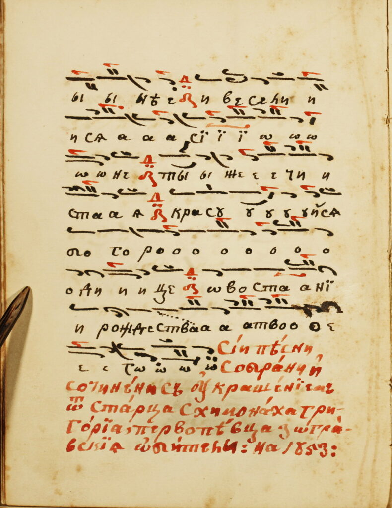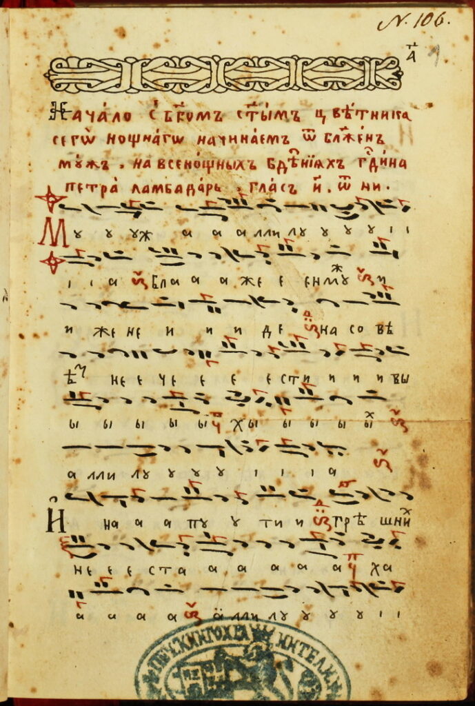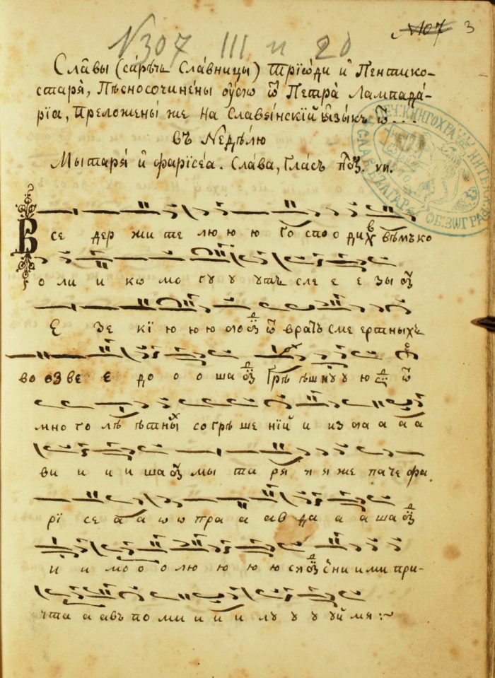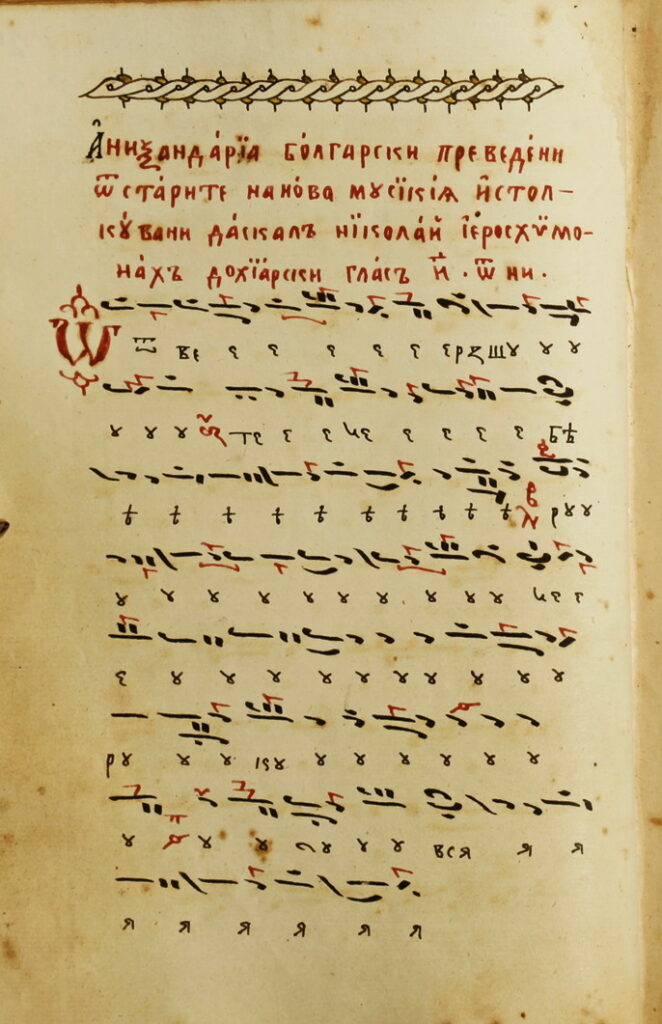 В репертоара на славянските певчески ръкописи наблюдаваме един завършен цикъл не само на преводни, но и на авторови творби, характерни за светогорската богослужебна практика, където водещи са произведенията на зографските отци. Същевременно обаче тя отразява певческата традиция и на различни други школи на Балканите.