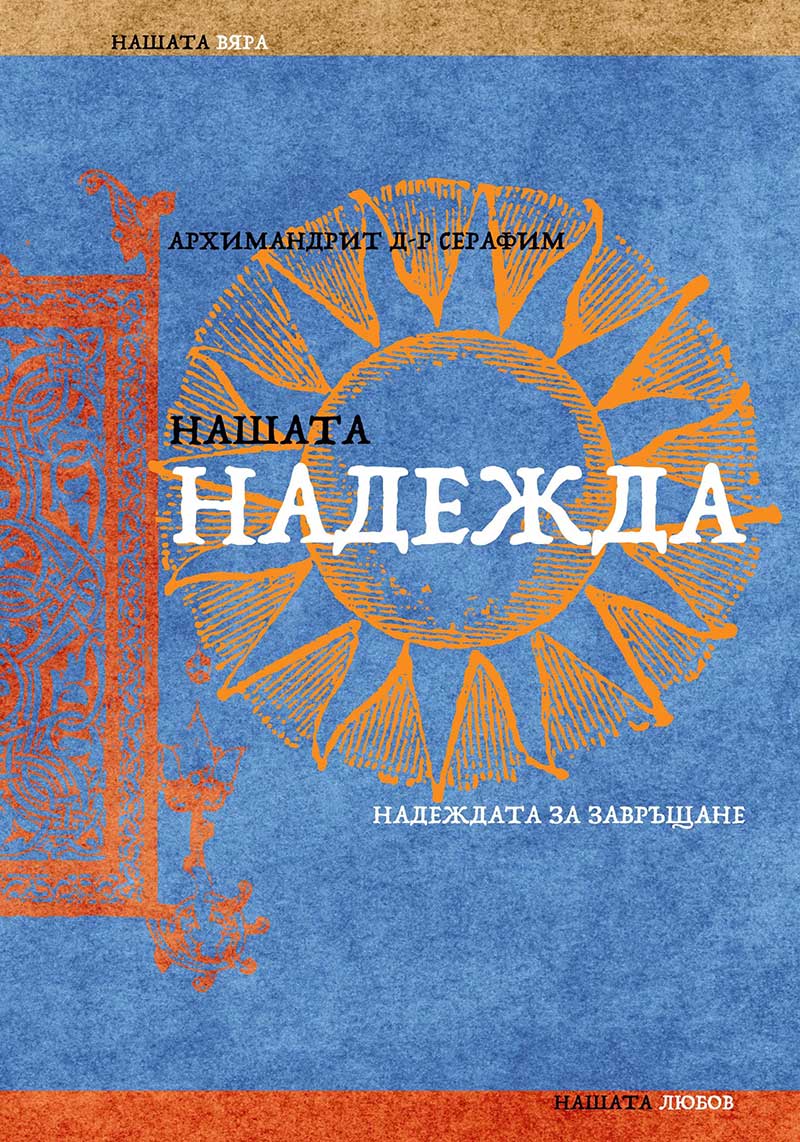 „Нашата надежда“, втората книга от трилогията на архимандрит Серафим, е прекрасен опит да бъдат показани истинските причини за неизбежните житейски скърби. В нея намираме и задълбочено разбиране къде трябва да бъде търсено действителното блаженство на създадения по Божий образ човек. Авторът използва известната проповед на Спасителя, Който говорел на хората от едно възвишение близо до Тивериадското море. Въз основа на провъзгласените от нашия Господ девет блаженства е изложено евангелското учение за  смисъла от следването на християнските добродетели и за последствията от съгласието с греха.